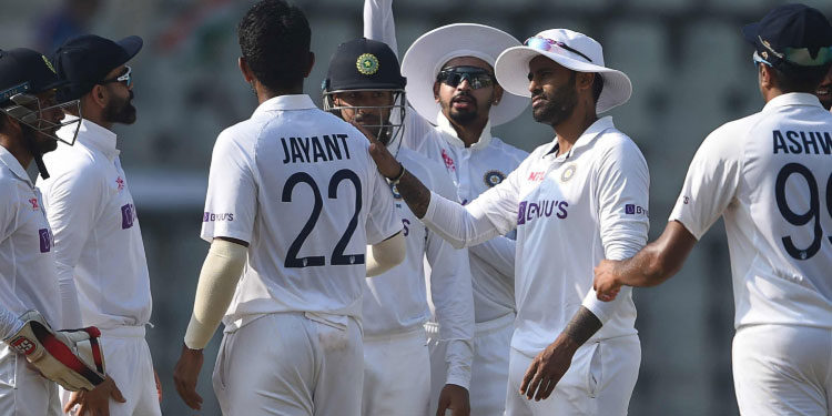 രണ്ടാം ഇന്നിങ്സിൽ ഡാരില് മിച്ചെല് (60), ഹെന് റി നിക്കോള്സ് (44) എന്നിവർക്കല്ലാതെ ന്യസിലൻഡ് നിരയിൽ ആർക്കും തിളങ്ങാനായില്ല. 140 – 5 എന്ന നിലയിലായിരുന്നു ന്യൂസിലാന്ഡ് നാലാം ദിനം കളി പുനരാരംഭിച്ചത്. എന്നാൽ സ്കോർ ബോർഡിലേക്കു 27 റണ്സ് ചേര്ക്കുന്നതിനിടെ അവശേഷിച്ച അഞ്ചു വിക്കറ്റുകളും കിവികൾക്ക് നഷ്ടമായി.